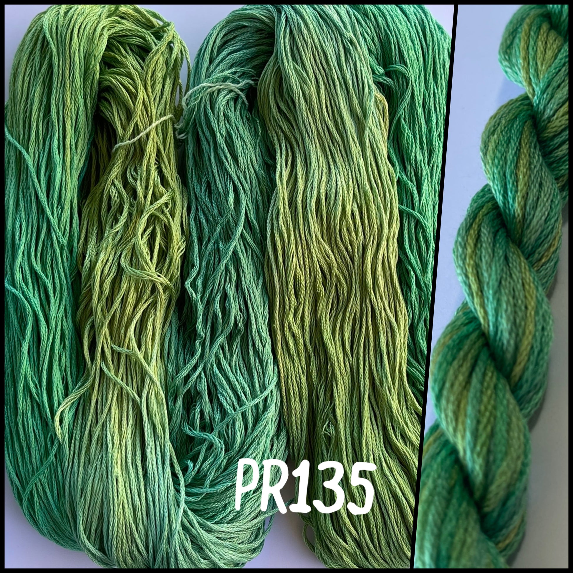 This is a 220 - 230 metre, 6 strand hank of our new Premium Silk. It is has a lovely shine, the strands are thicker and it is soft and beautiful to stitch with. This is equal to approx 28 skeins of DMC. It has great coverage with 2 strands over 2 fabric threads on smaller count fabric and canvas and with one thread on 32 count fabric and above.