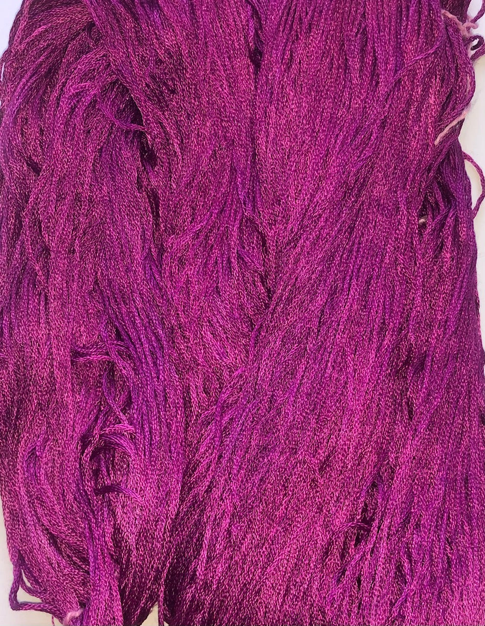 This hank is a lovely deep Raspberry and is the same colour that is found in PR174. Because this silk is so shiny, the differences in colour are often exaggerated in the photo. If you have any questions, please ask.