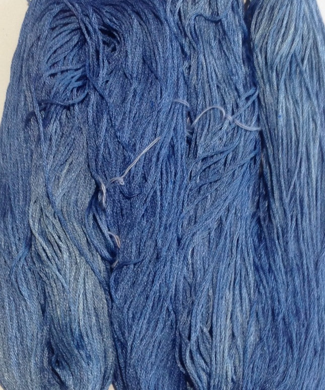 This hank has a subtle variegation from a lighter to a medium and dark blue. This hank is dyed with the same base colour as PR012. Because this silk is so shiny, the differences in colour are often exaggerated in the photo. If you have any questions, please ask.