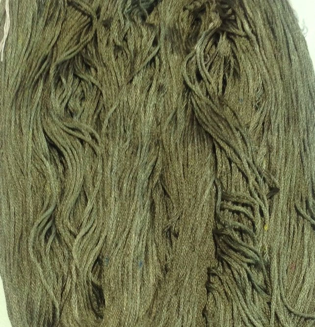 This hank is a camo green/brown. Because this silk is so shiny, the differences in colour are often exaggerated in the photo. If you have any questions, please ask.