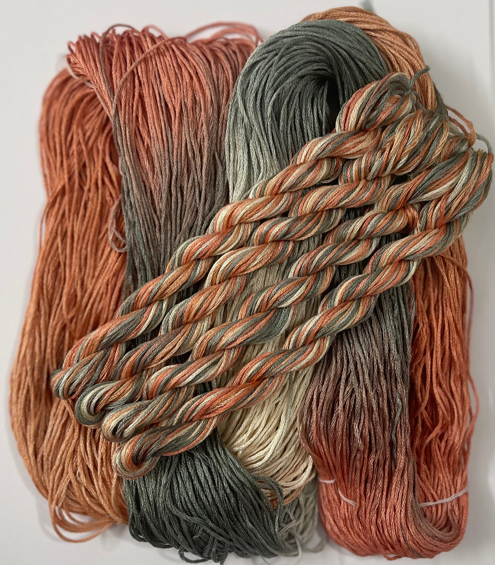 This is a 220 - 230 metre, 6 strand hank of our new Premium Silk. It is has a lovely shine, the strands are thicker and it is soft and beautiful to stitch with. This is equal to approx 28 skeins of DMC. It has great coverage with 2 strands over 2 fabric threads on smaller count fabric and canvas and with one thread on 32 count fabric and above.